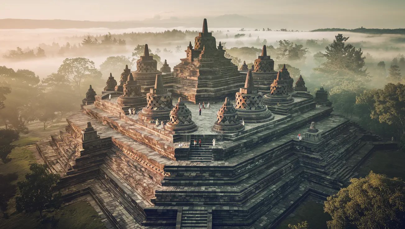 Borobudur Temple is the largest Buddhist temple in the world located in Magelang, Central Jawa. This Built in the 8th and 9th centuries AD by the Syailendra Dynasty, this temple is a masterpiece of Buddhist architecture, with its mandala-shaped structure symbolizing the journey to enlightenment. This UNESCO World Heritage site features six square terraces topped by three circular courtyards. Consists of nine levels, namely six square terraces at the bottom and three circular courtyards at the top.